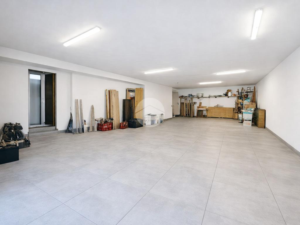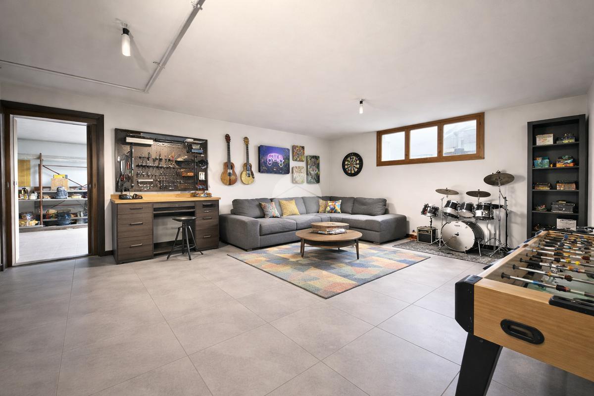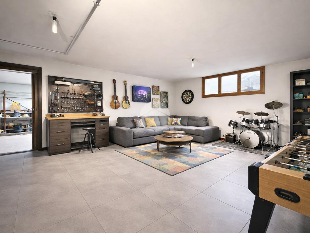 Al piano semi-interrato si trova una spaziosa taverna, perfetta come zona hobby, area relax o sala giochi, con accesso diretto al box, offrendo uno spazio extra versatile e funzionale.